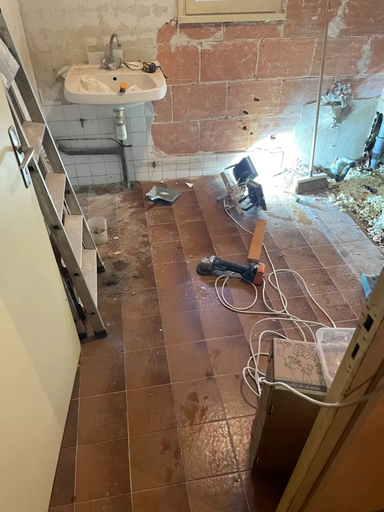 Votre peintre à Allex a commencé par démolir l'entièreté de la salle de bain, pour pouvoir enlever les sanitaires.